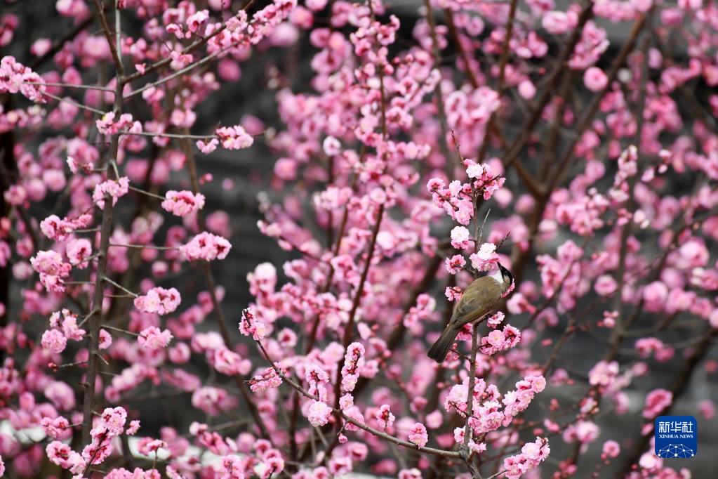 春回大地,萬(wàn)物復蘇。鳥(niǎo)兒在花叢中覓食休憩,一派生機勃勃的春日景象。