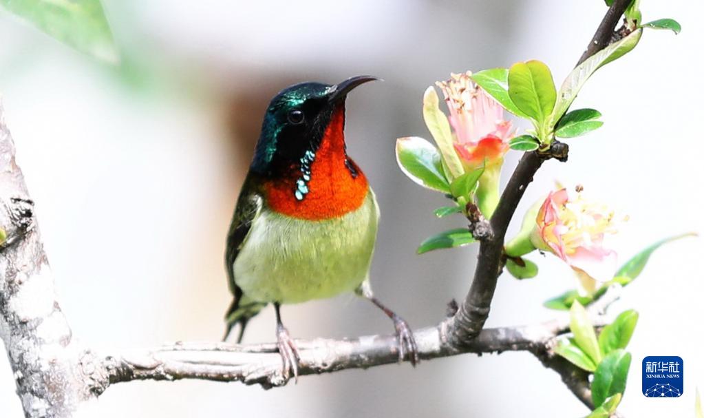 2月27日,在四川省達州市通川區大寨子公園,一只太陽(yáng)鳥(niǎo)在花枝上停歇。