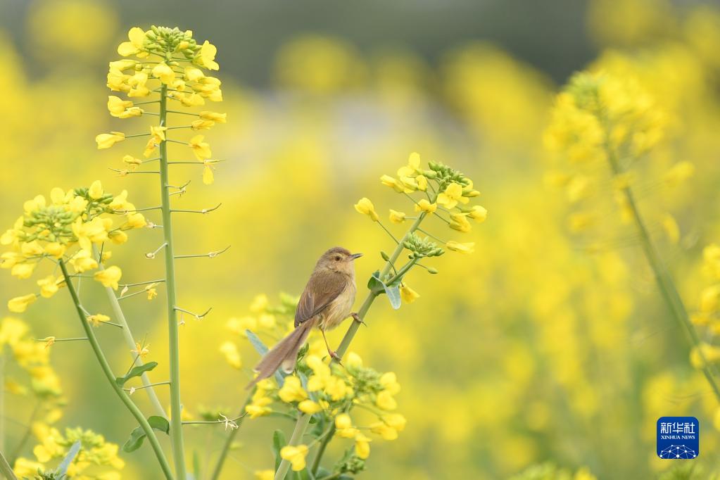 2月28日,在貴州省遵義市余慶縣白泥鎮團結村,一只鳥(niǎo)兒在油菜花枝頭上停歇。