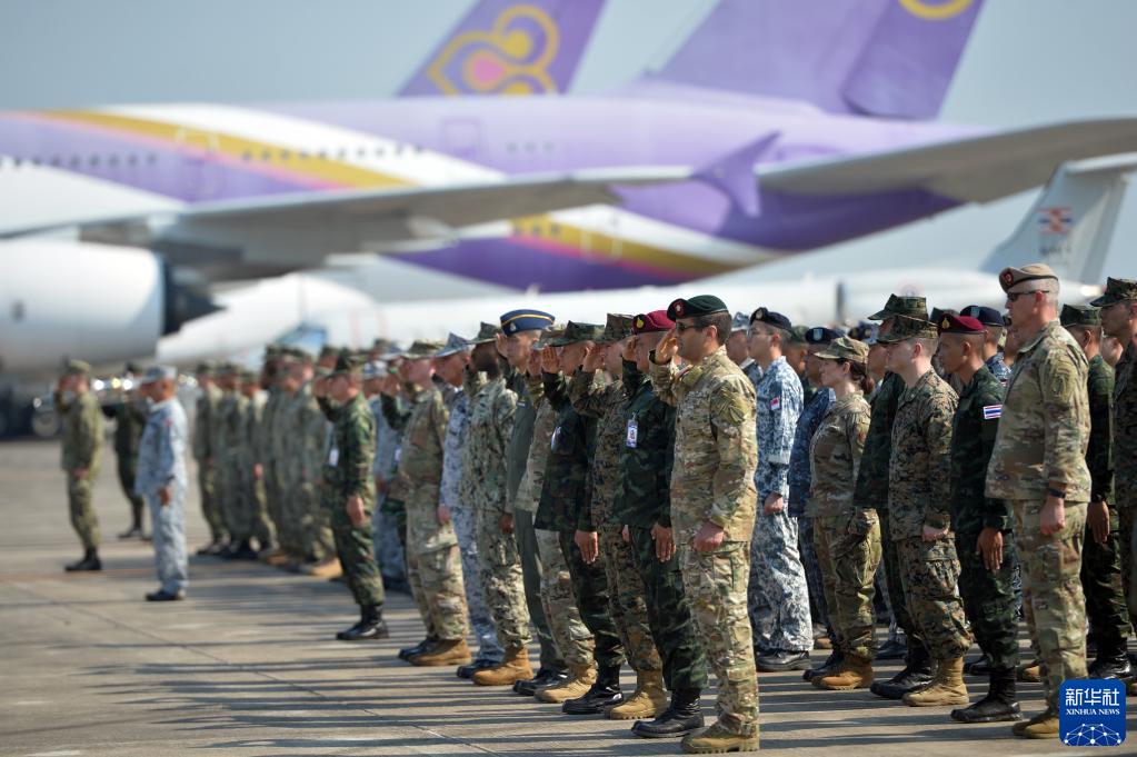 2月28日,多國軍人在泰國羅勇府烏塔堡海軍基地出席開(kāi)幕式。