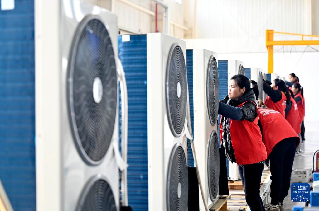 2月28日,工人在柳江區一家電器企業(yè)的車(chē)間里檢查即將下線(xiàn)的熱泵產(chǎn)品。