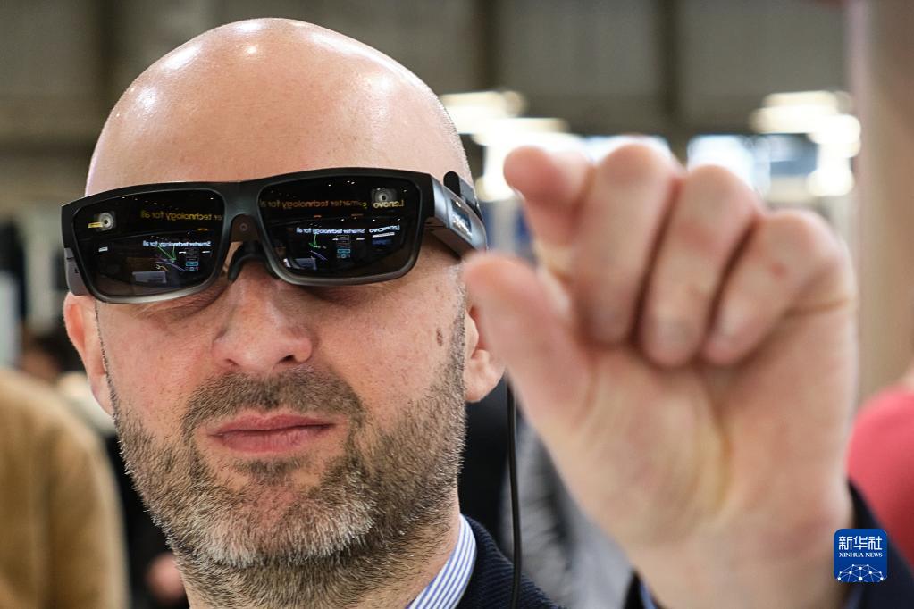 2月28日,一名男子在西班牙巴塞羅那舉行的2023世界移動(dòng)通信大會(huì )上體驗虛擬現實(shí)技術(shù)。