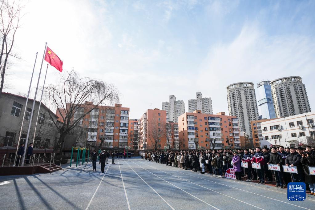 3月1日,沈陽(yáng)市第七中學(xué)的師生在進(jìn)行升旗儀式。