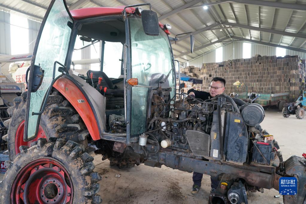 2月28日,王昌在來(lái)安縣水口鎮擁巷村對農業(yè)機械進(jìn)行春耕前的檢修。