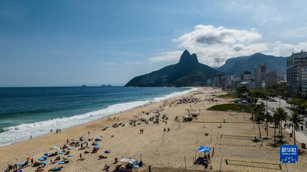 這是3月1日拍攝的巴西里約熱內盧伊帕內馬海灘和兩兄弟山(無(wú)人機照片)。