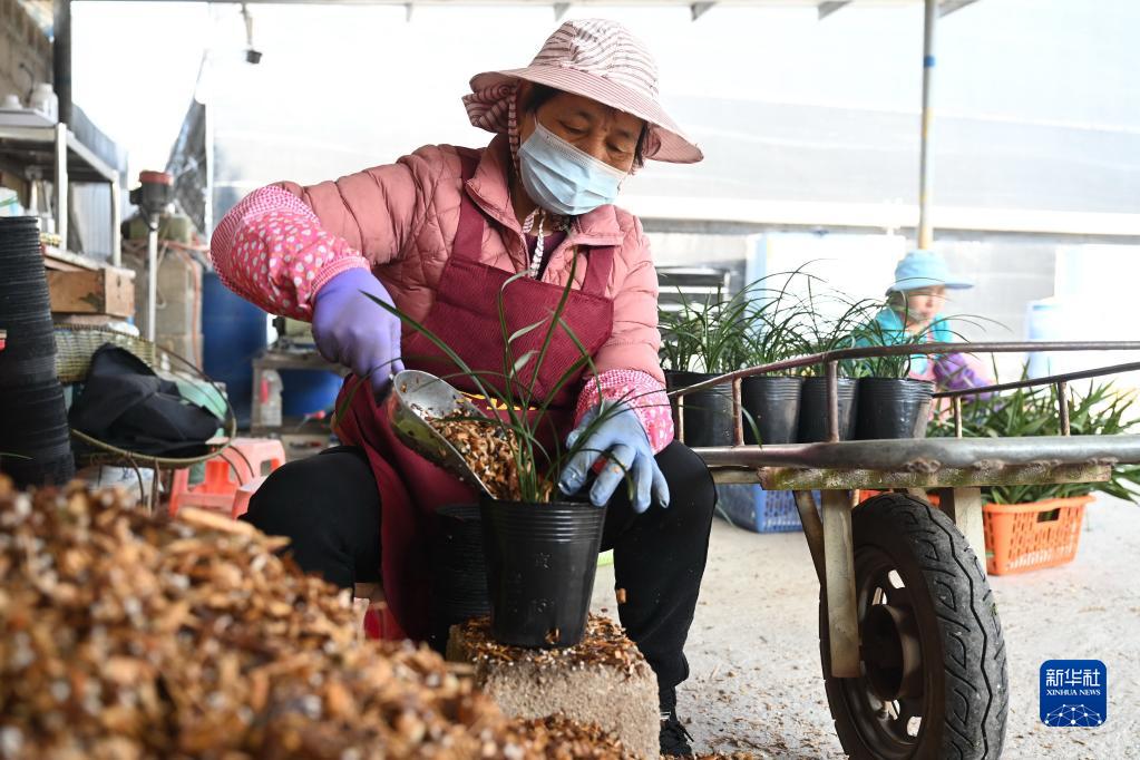 3月1日,南靖縣的“瑞德蘭園”員工進(jìn)行蘭花翻盆勞作。