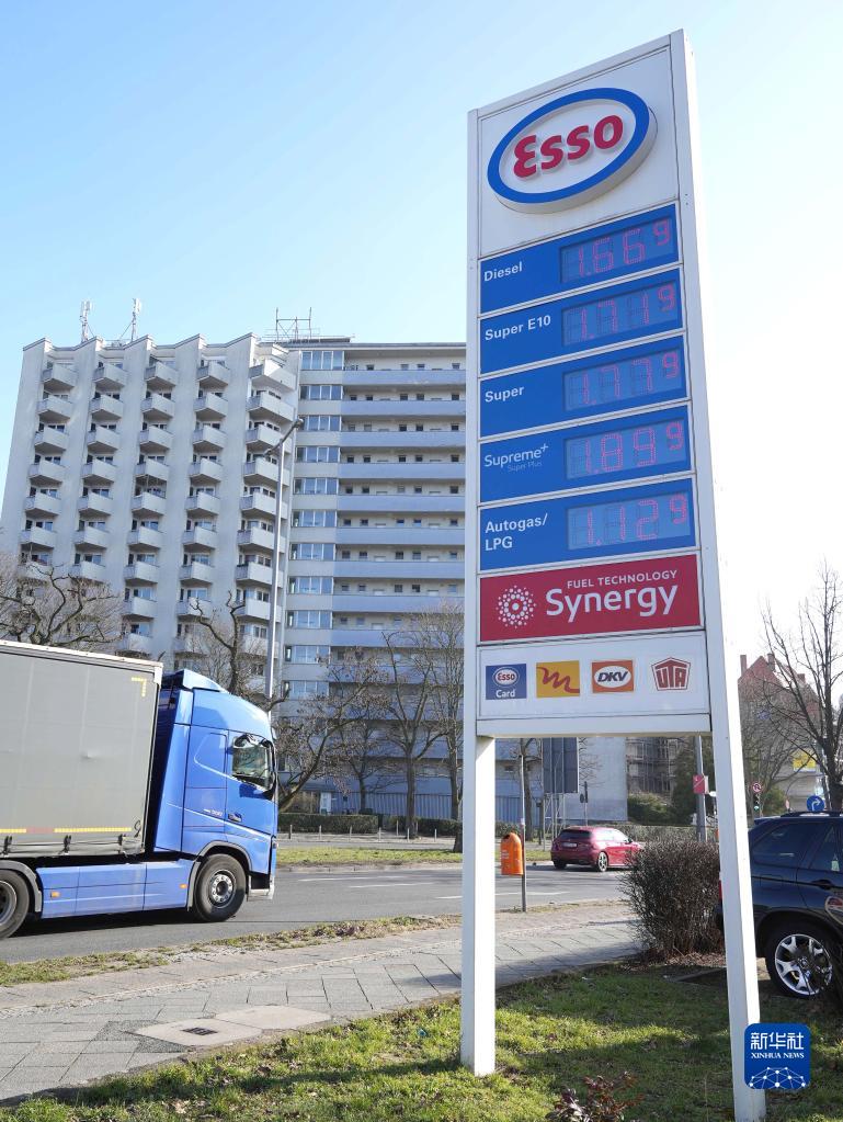 這是3月2日在德國柏林拍攝的一家加油站的油價(jià)牌。