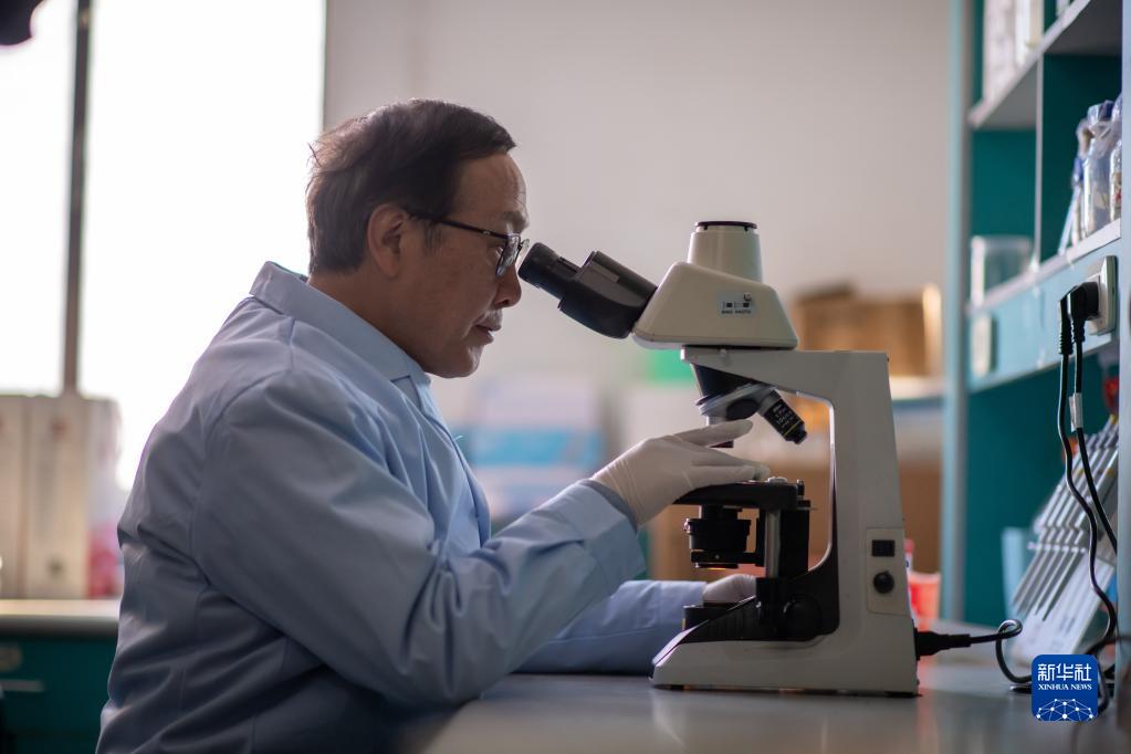 2月6日,全國人大代表、中國科學(xué)院院士、云南大學(xué)云南生物資源保護與利用國家重點(diǎn)實(shí)驗室主任張克勤在實(shí)驗室用顯微鏡觀(guān)察線(xiàn)蟲(chóng)。