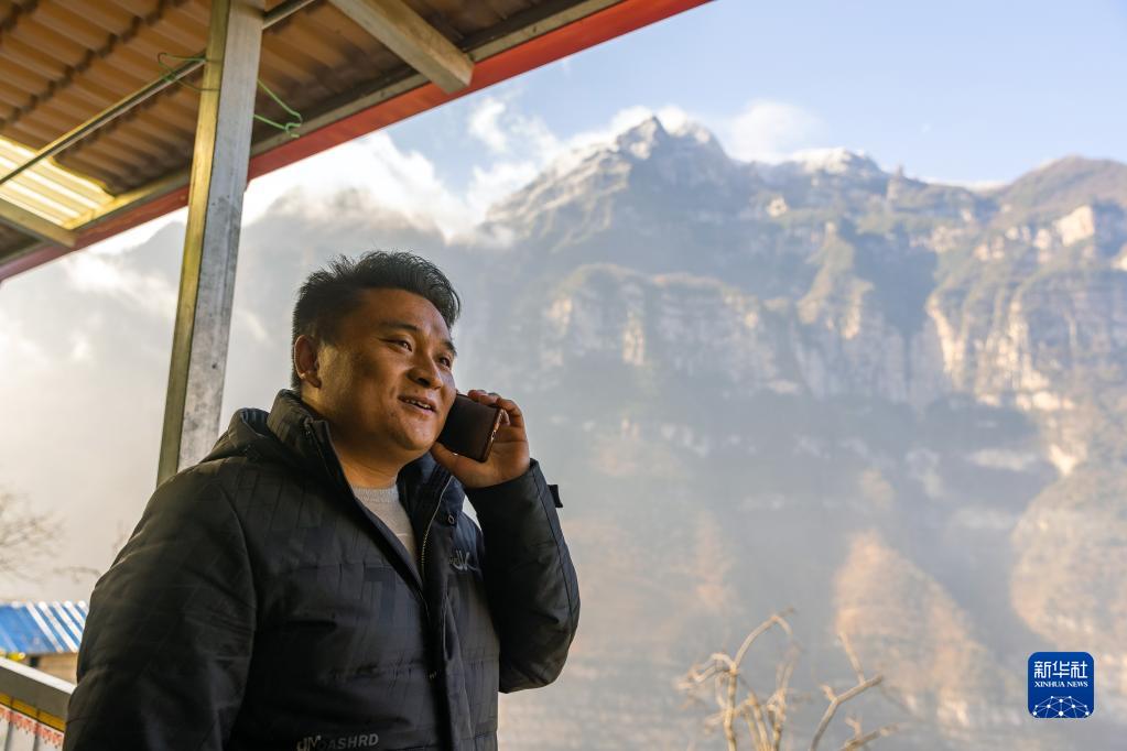 2月14日,在古路村農家樂(lè )“申大哥接待站”,鄭望春通過(guò)電話(huà)與外地游客溝通來(lái)村里游覽、住宿的事宜。