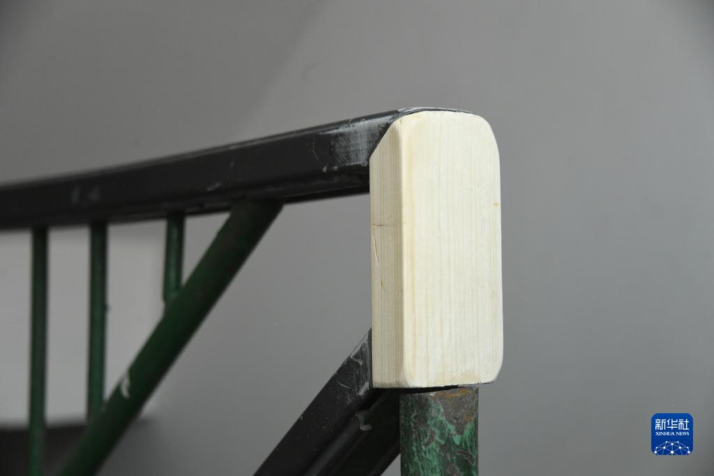 3月4日在北京市順義區旺泉街道宏城花園社區一座居民樓內拍攝的殷萬(wàn)江修復好的扶手。