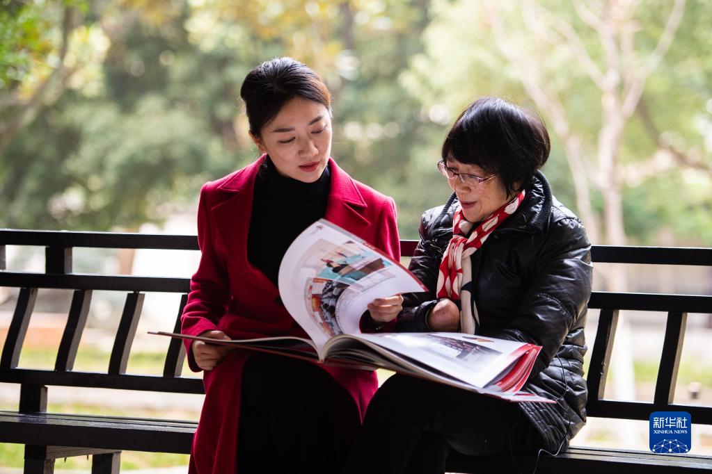 3月1日,在湖南雷鋒紀念館,張璐琪(左)翻著(zhù)相冊聽(tīng)著(zhù)母親譚荒芳分享過(guò)去宣講雷鋒精神的故事。