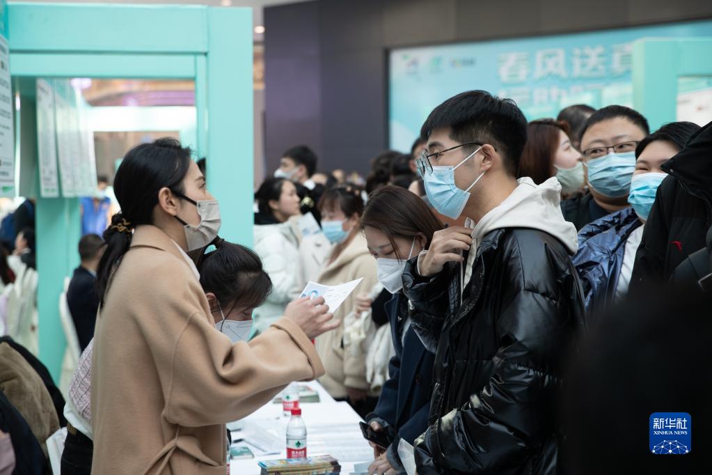 3月4日,在2023哈爾濱新區重點(diǎn)企業(yè)專(zhuān)場(chǎng)招聘會(huì )現場(chǎng),求職者在與用人單位工作人員交流。