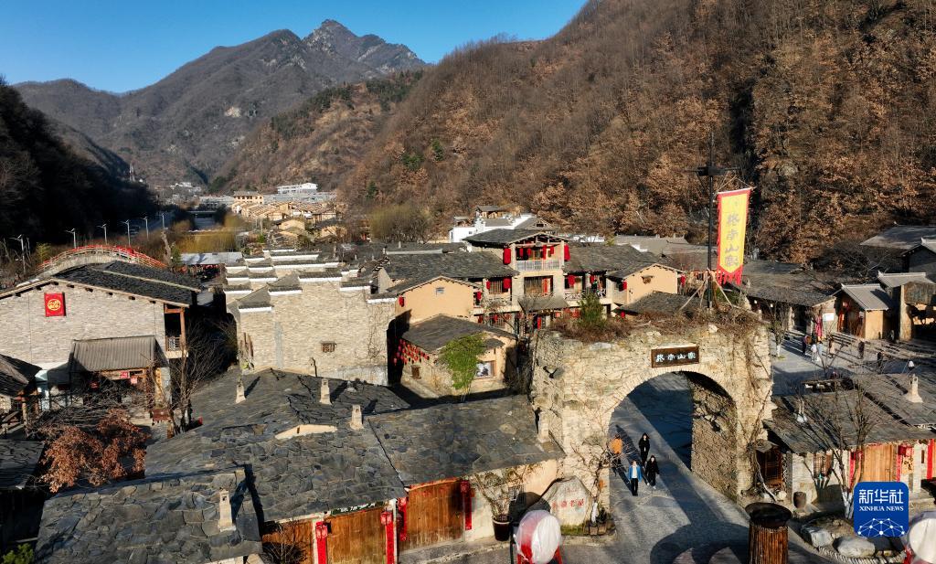 沐浴在晨曦的柞水縣終南山寨景區(3月4日攝,無(wú)人機照片)。