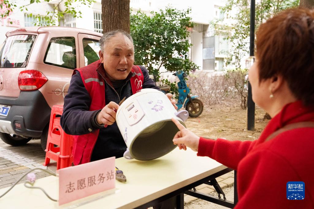 “小桔燈”服務(wù)社的志愿者在南昌市青云譜區徐家坊街道錦聯(lián)社區開(kāi)展小家電維修等志愿服務(wù)(3月3日攝)。