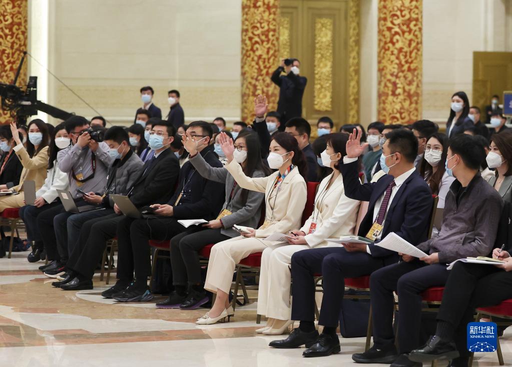 3月5日,全國政協(xié)十四屆一次會(huì )議在北京人民大會(huì )堂舉行民主黨派中央和全國工商聯(lián)領(lǐng)導人記者會(huì )。這是記者在舉手提問(wèn)。