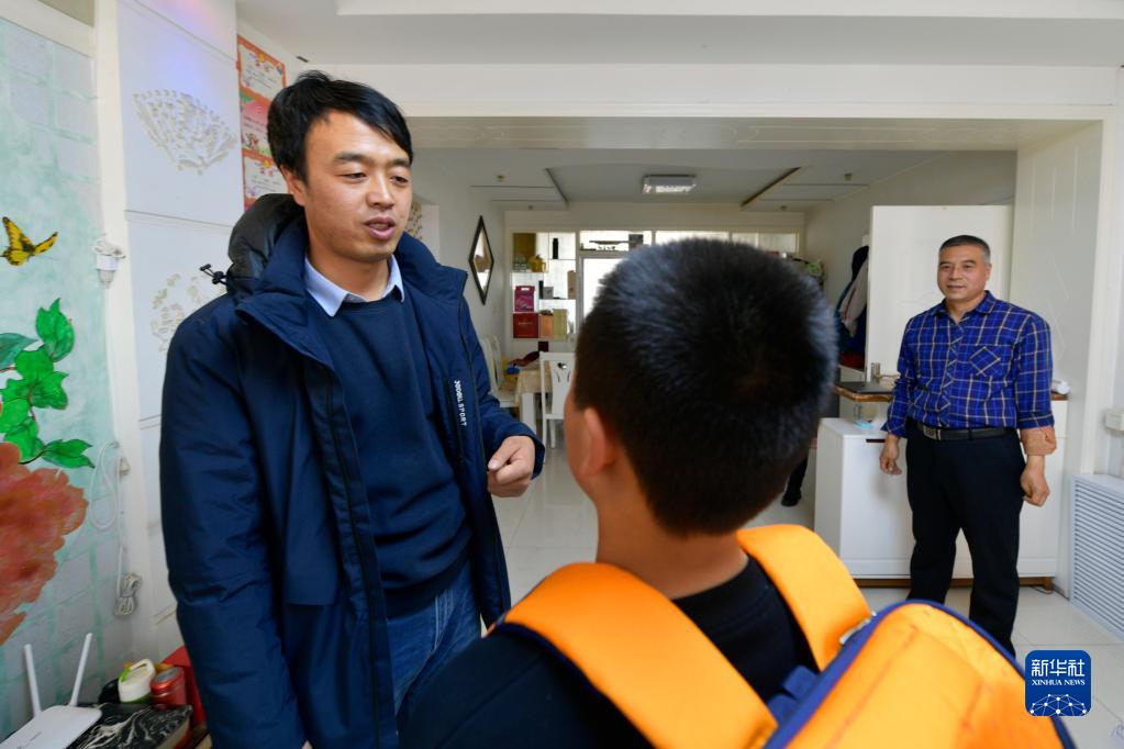 3月4日,劉富強(左一)在嘉峪關(guān)一小區看望公益協(xié)會(huì )幫扶的一名兒童。
