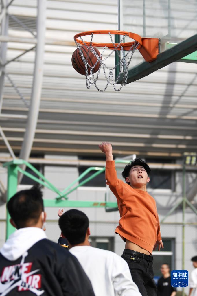 3月2日,幾位籃球愛(ài)好者在甘肅省蘭州市體育公園的室外籃球場(chǎng)打球。