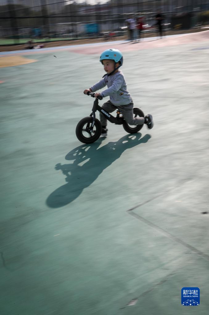3月4日,一名小朋友在江蘇省昆山市周市鎮城市運動(dòng)廣場(chǎng)上騎平衡車(chē)。