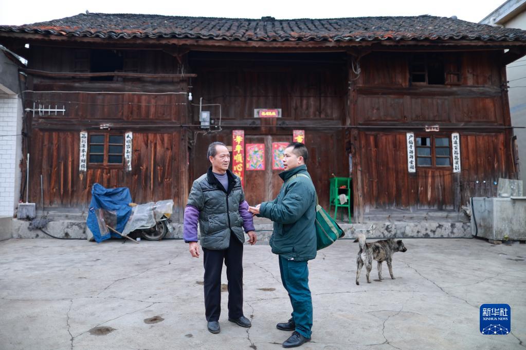 莫富元在貴州省龍里縣平西村與村民交流(2月14日攝)。