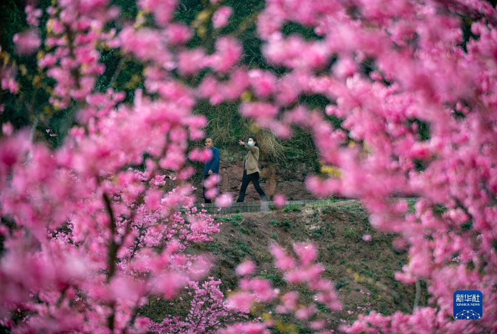 3月5日,兩名游客在馬龍區沈家山櫻花谷觀(guān)光游覽。