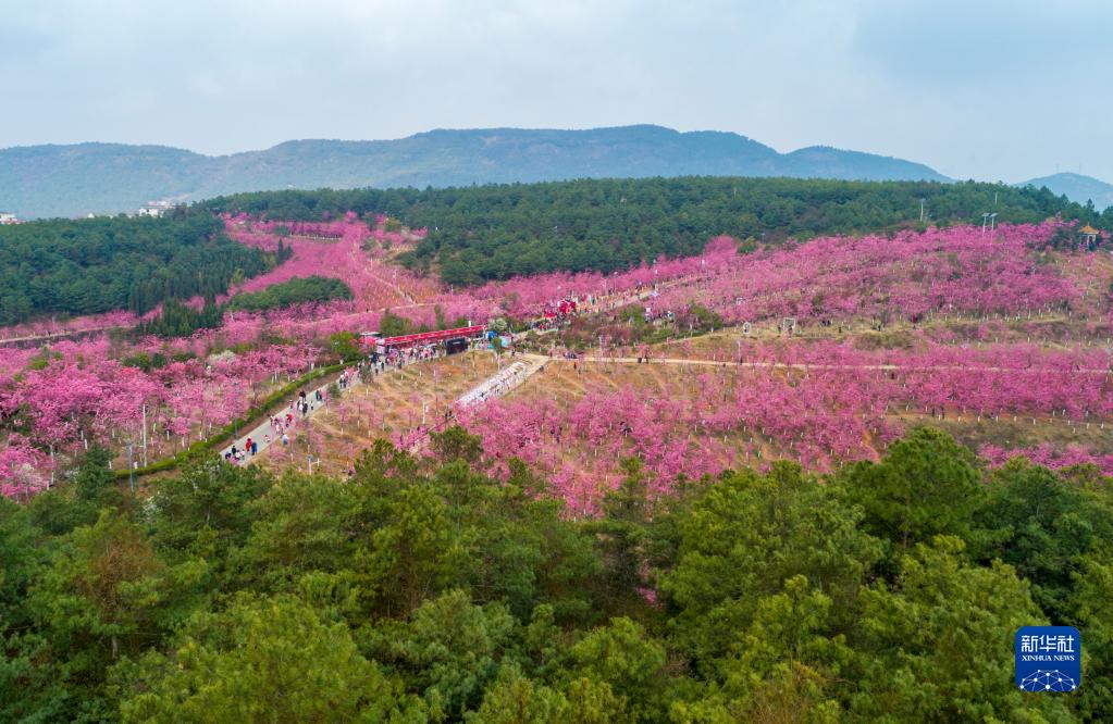 近日,云南省曲靖市馬龍區沈家山櫻花谷的400余畝櫻花陸續綻放,吸引游客前來(lái)觀(guān)光游覽。