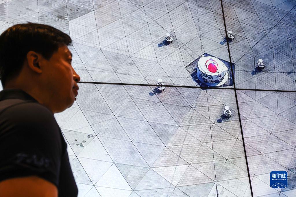 2022年8月25日,姜鵬在“中國天眼”的總控室內工作(維護保養期間拍攝)。