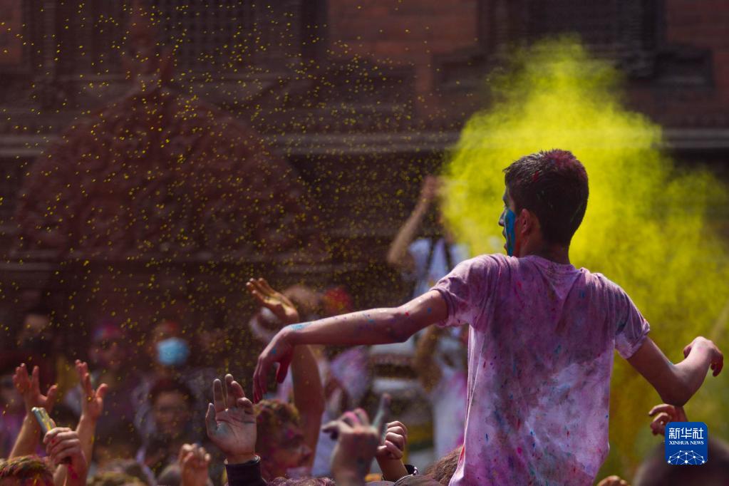 3月6日,人們在尼泊爾加德滿(mǎn)都參加灑紅節慶?;顒?dòng)。