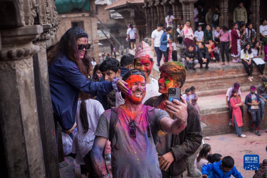 3月6日,人們在尼泊爾勒利德布爾參加灑紅節慶?;顒?dòng)。