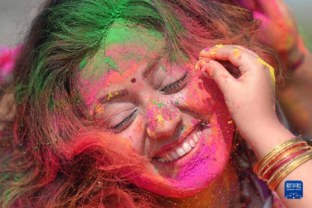 灑紅節也叫胡里節,人們在節日期間互相涂抹顏料,迎接春天的到來(lái)。