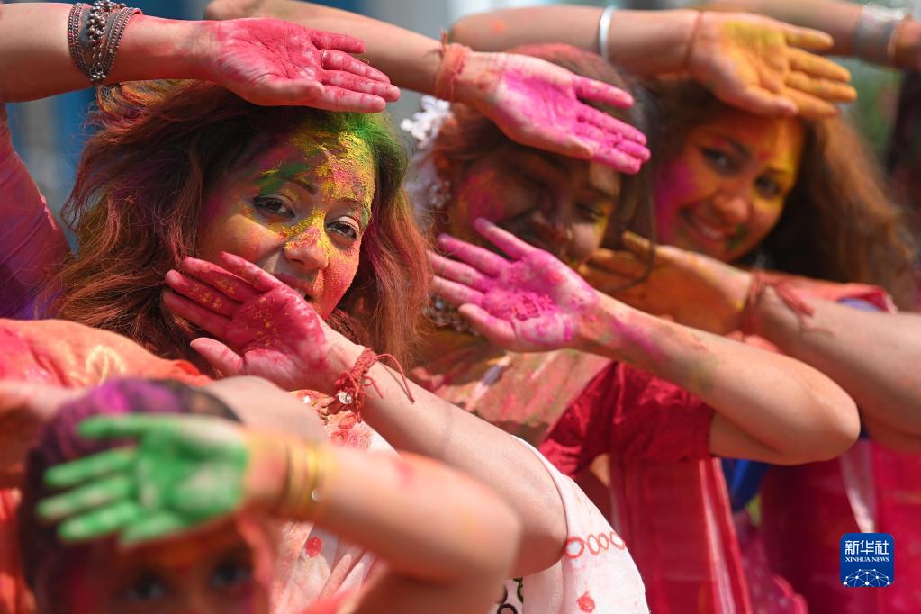 灑紅節也叫胡里節,人們在節日期間互相涂抹顏料,迎接春天的到來(lái)。