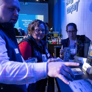 3月6日,在美國休斯敦舉行的“劍橋能源周”上,人們參加“創(chuàng )新集市”的一場(chǎng)活動(dòng)。