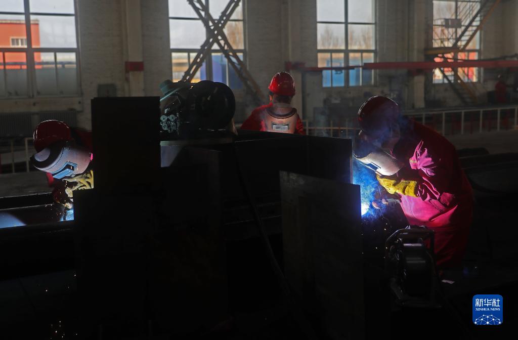 2月27日,女子焊工班成員在焊接車(chē)間作業(yè)。