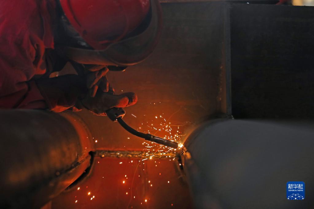 2月27日,駱建寧在焊接車(chē)間作業(yè)。