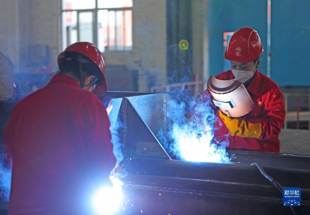2月27日,女子焊工班成員在焊接車(chē)間作業(yè)。