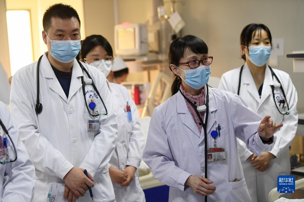 3月6日,馬娜(右二)和同事在病房?jì)炔榉俊?/p>