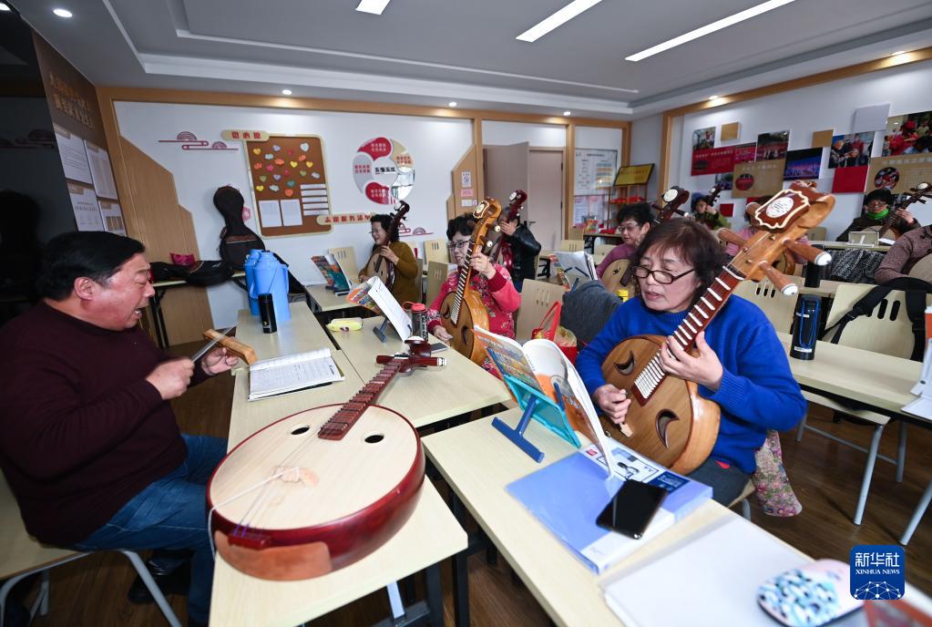 3月7日,在嘉興市南湖區桂苑社區的老年大學(xué)活動(dòng)室內,老人們在老師的指導下學(xué)琴。