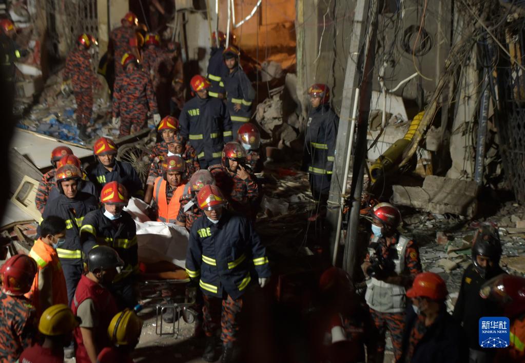 3月7日,在孟加拉國首都達卡,救援人員搬運遇難者遺體。