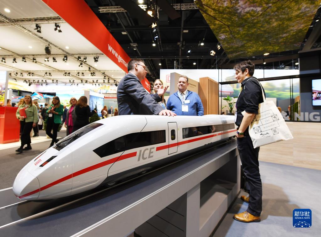 3月7日,人們在德國柏林舉行的柏林國際旅游交易會(huì )德國鐵路公司展區交流。