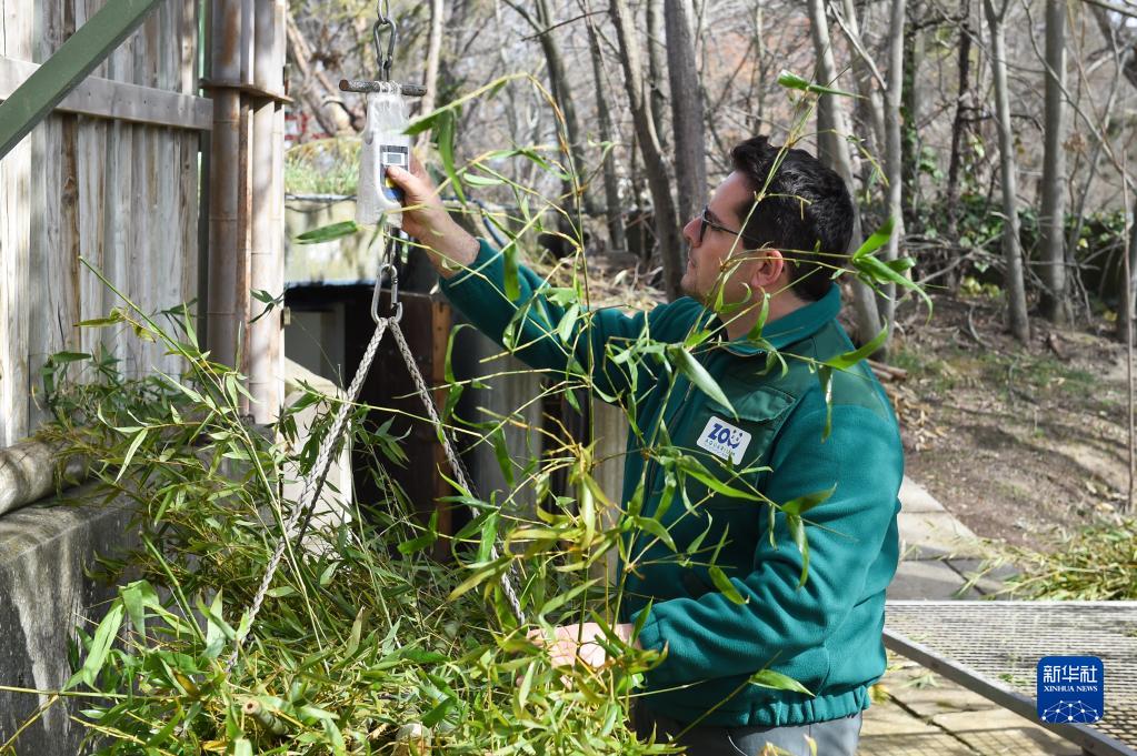 3月7日,大熊貓飼養員亞歷杭德羅·卡布雷拉在西班牙馬德里動(dòng)物園工作。
