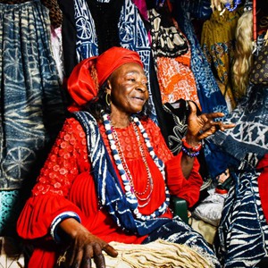 恩多普是主要流行于喀麥隆西部大區的一種布料,可以制成衣物、帽子和項鏈等。制作過(guò)程中,先用墨線(xiàn)在白色棉布上繪制紋樣,再用干燥的棕櫚葉脈做線(xiàn)把紋樣扎起來(lái),經(jīng)靛藍的植物染料浸染后,拆去棕櫚葉脈,便得到藍底白紋的恩多普。如今,眾多喀麥隆婦女投入恩多普制作領(lǐng)域,這不僅改善了她們的生活,也推動(dòng)了文化的傳承。