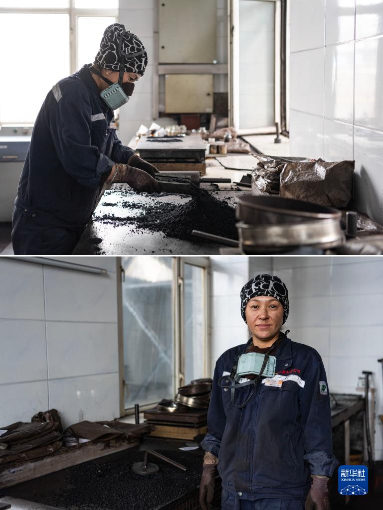 拼版照片:上圖為在黑龍江省七臺河市,寶泰隆新材料股份有限公司焦化廠(chǎng)工人左冰冰在制作煤樣,以便進(jìn)行煤質(zhì)分析;下圖:左冰冰在崗位上留影(3月7日攝)。