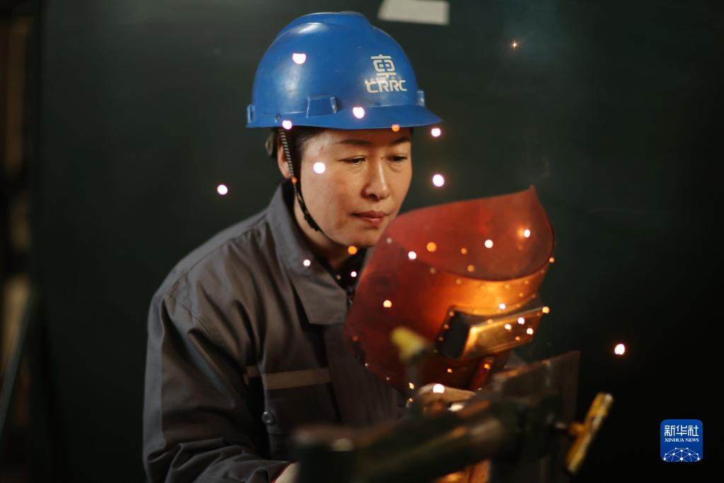 3月6日,中車(chē)齊車(chē)集團齊車(chē)公司電焊工張敬華在作業(yè)中。