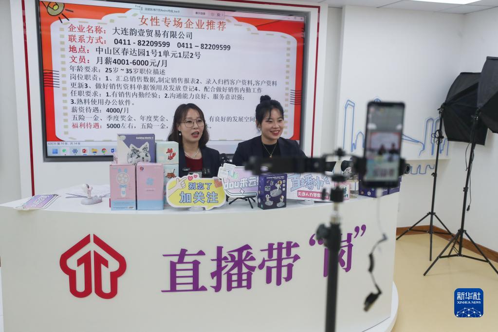 3月8日,大連市人力資源市場(chǎng)的工作人員通過(guò)視頻直播的方式介紹招聘企業(yè)和崗位的情況。
