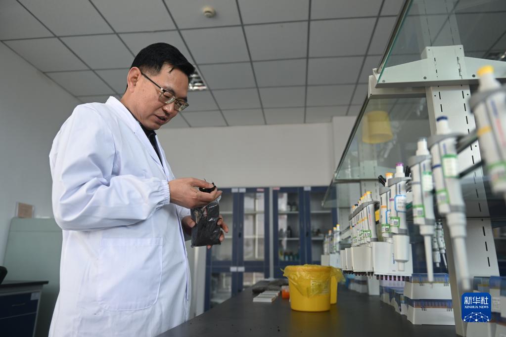 2月24日,在位于青海省海北藏族自治州的青海省高寒草地適應性管理重點(diǎn)實(shí)驗室,董全民在查看土壤樣本。