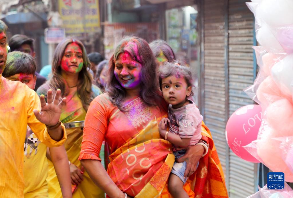 灑紅節也叫胡里節,人們在節日期間互相涂抹顏料,迎接春天的到來(lái)。