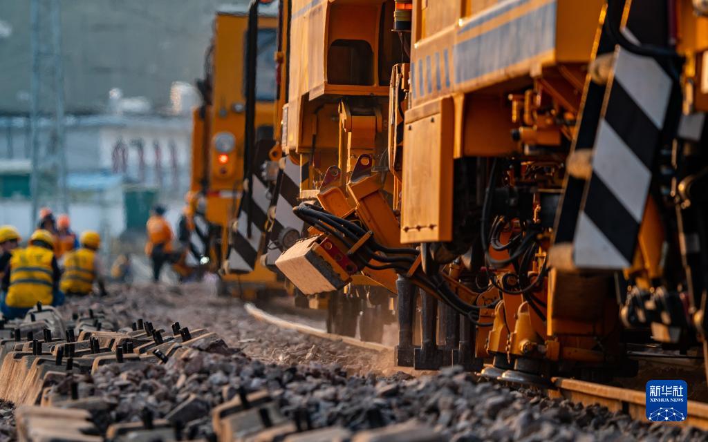 養路機械沿著(zhù)鐵路進(jìn)行線(xiàn)路搗固作業(yè)(3月8日攝)。