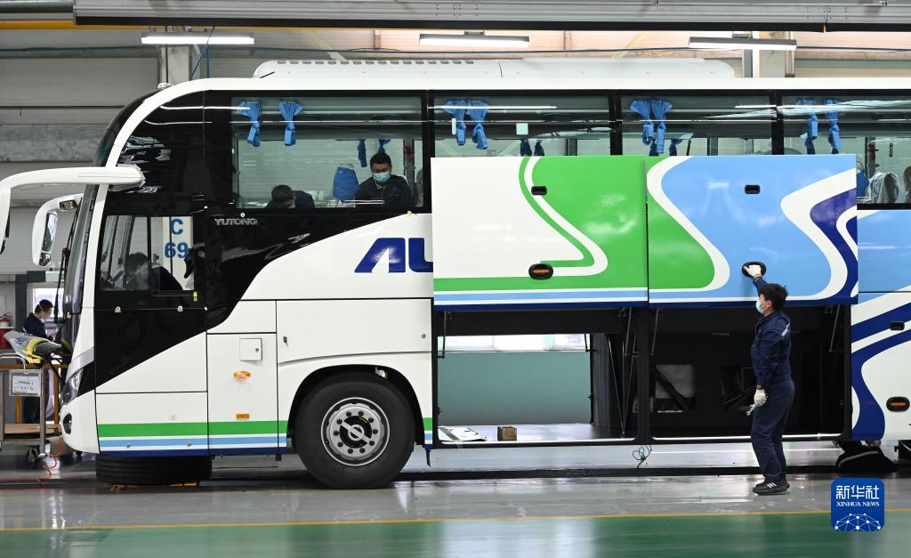 近日,在位于河南省鄭州市的宇通新能源廠(chǎng)區高端及海外承裝車(chē)間里,工作人員在流水線(xiàn)上忙碌地趕訂單生產(chǎn)。今年以來(lái),宇通客車(chē)海外出口持續走熱,相繼獲得多個(gè)海外訂單。據介紹,截至目前,宇通客車(chē)已遠銷(xiāo)30多個(gè)國家和地區。