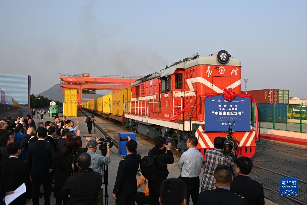 新華全媒+|義烏和馬德里對開(kāi)“中西建交紀念號”班列