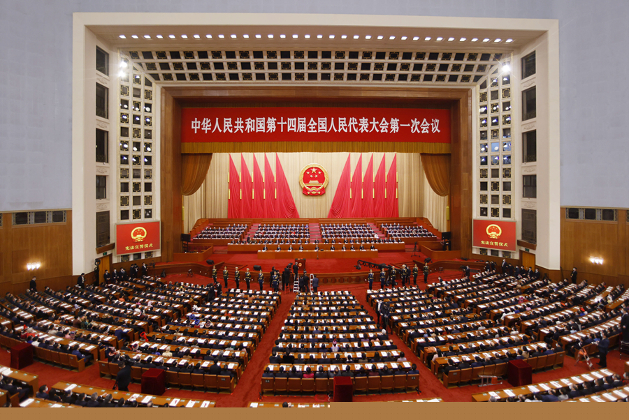 3月10日,中華人民共和國第十四屆全國人民代表大會(huì )第一次會(huì )議憲法宣誓儀式在北京人民大會(huì )堂舉行。