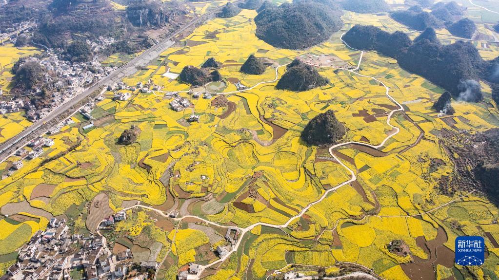 近日,貴州省六盤(pán)水市六枝特區木崗鎮的16000余畝油菜花競相綻放,與田地、民居、道路構成了美麗的春日畫(huà)卷。